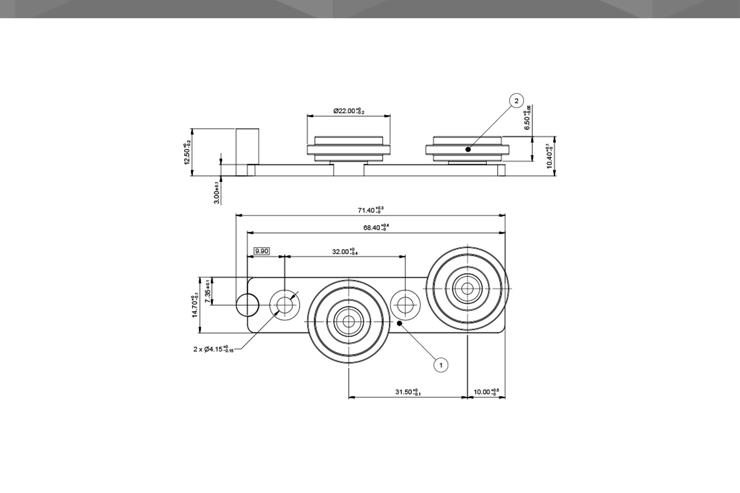 Guia RM POM 2 Rodízio Ø22 x 6 mm Escareado 32 mm