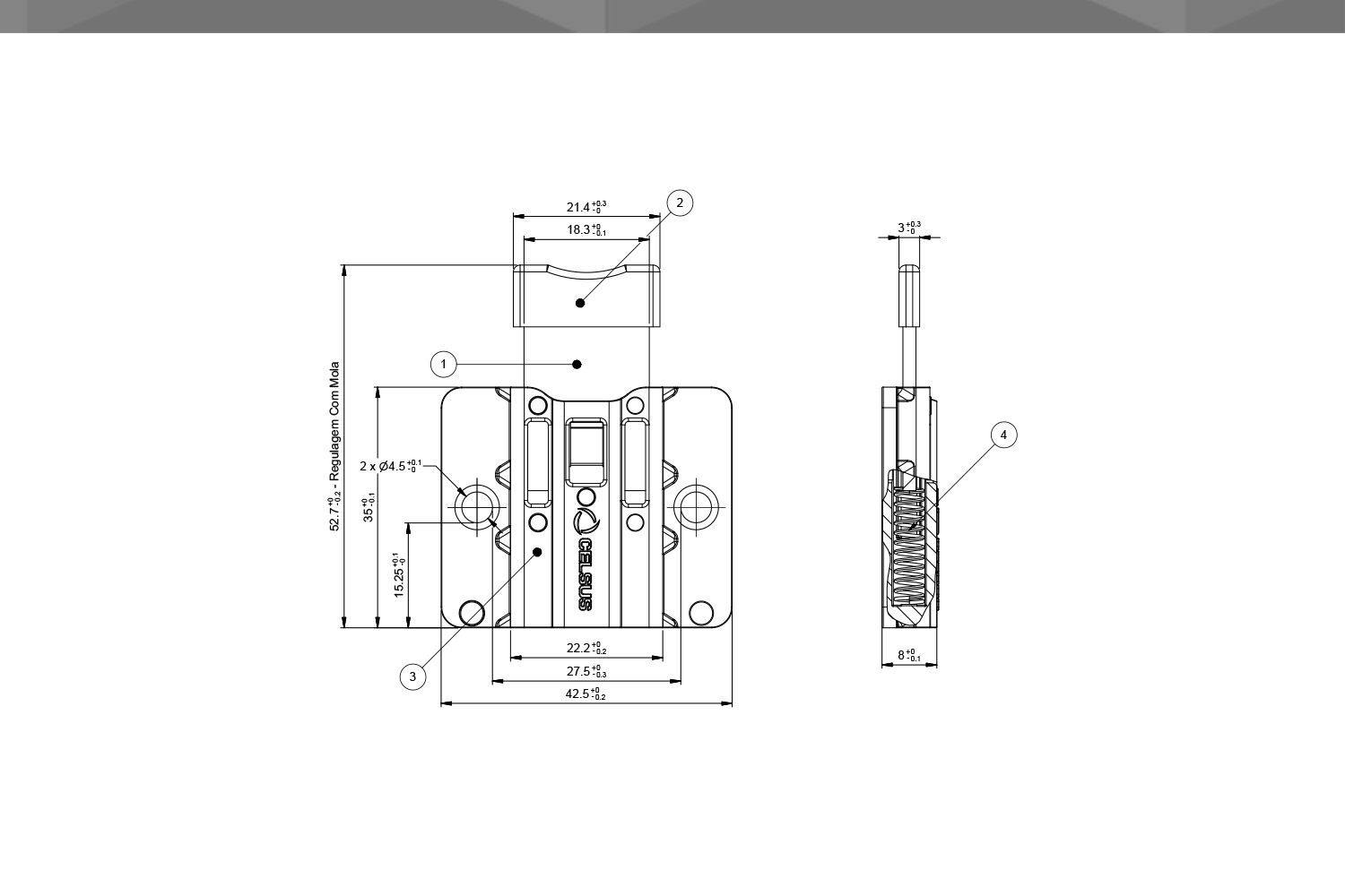 Guia RM Plana Corpo POM Chapa Aço 3 MM Com Mola