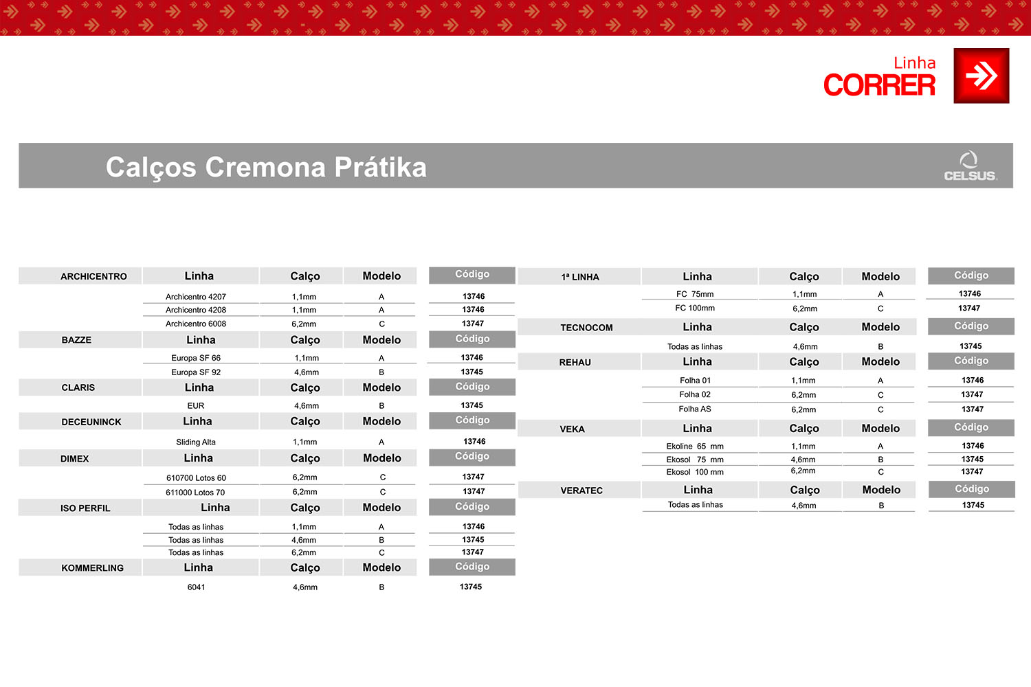 Calço para cremona Prátika 4,6 x 11,5 x 33mm | cod.13745