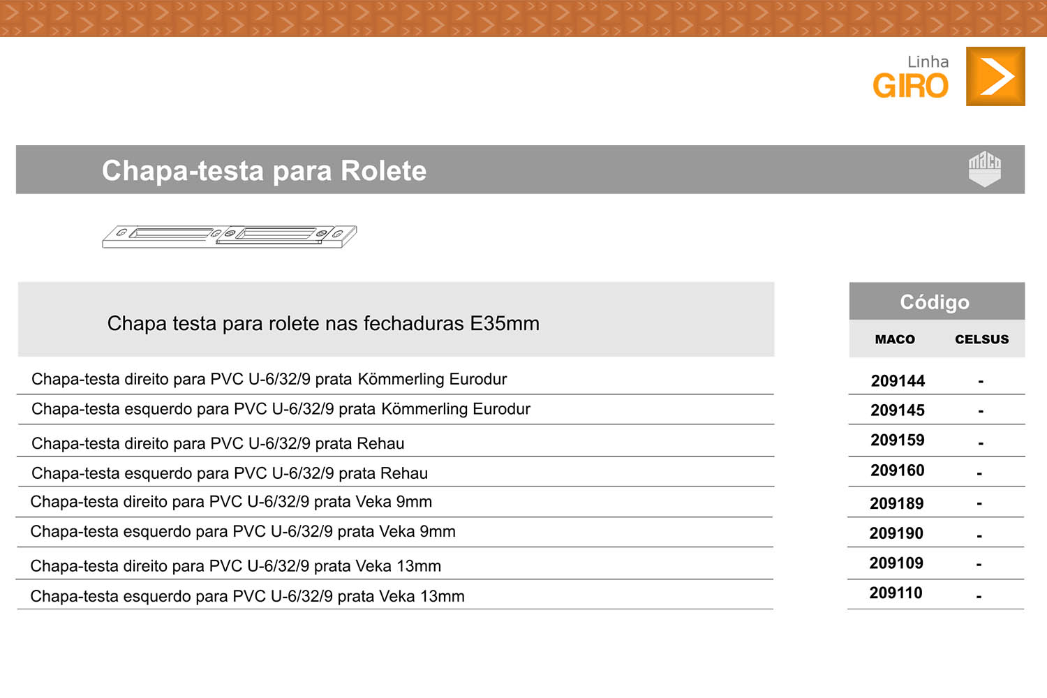 CHAPA-TESTA PARA ROLETE FECHADURAS E35