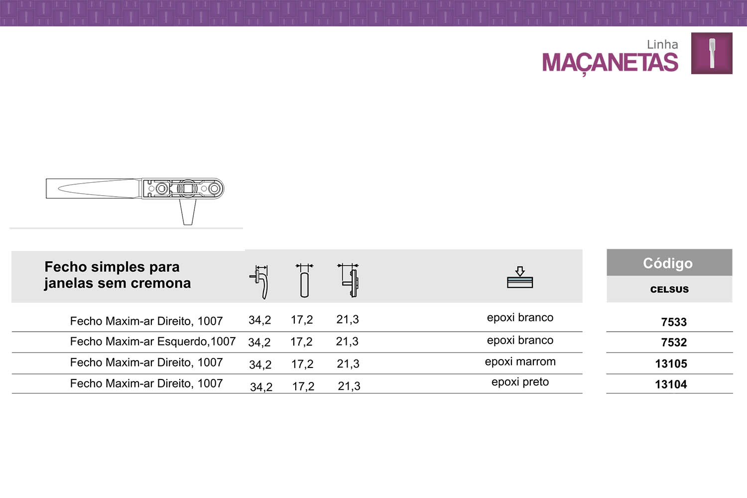 FECHO SIMPLES PARA JANELA SEM CREMONA CELSUS | 1007