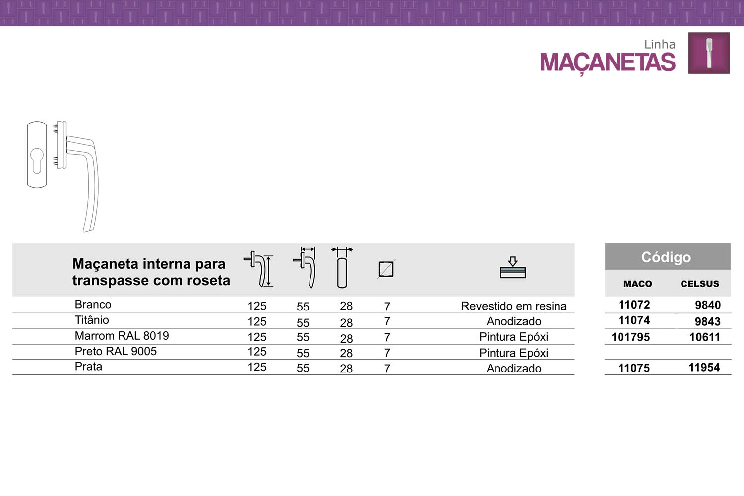 MAÇANETA INTERNA PARA TRANSPASSE COM ROSETA