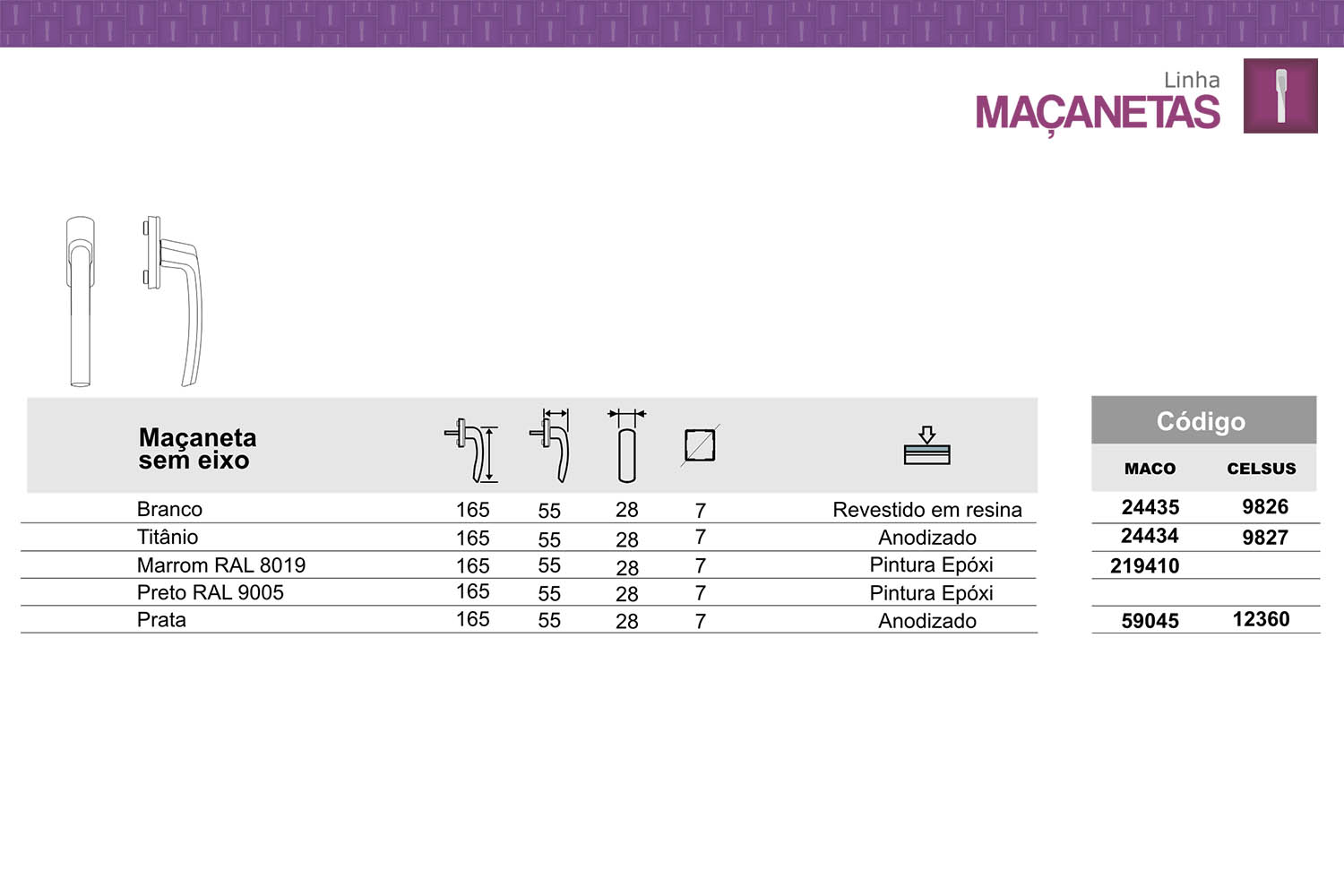 MAÇANETA LONGA SEM EIXO